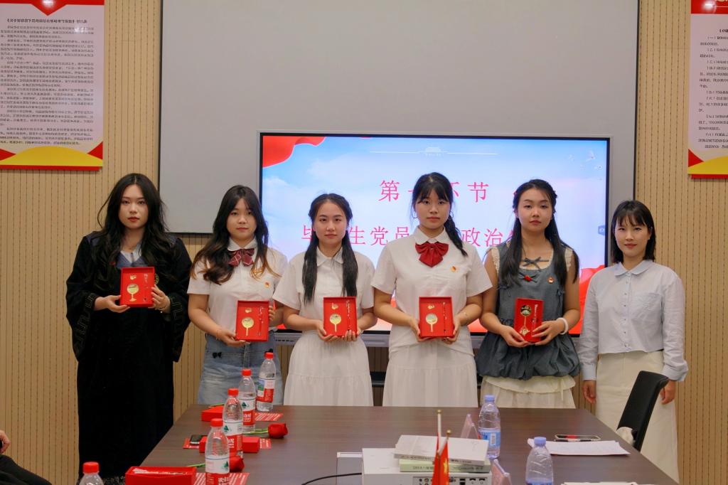 活动特别设置同过“政治生日”环节,毕业生党员集体阅读《致党员的一封信》,通过回顾入党初心与成长历程,强化身份认同与使命担当,进一步激发党员的责任感与荣誉感。随后,杨璐为毕业生党员送上政治生日礼物。