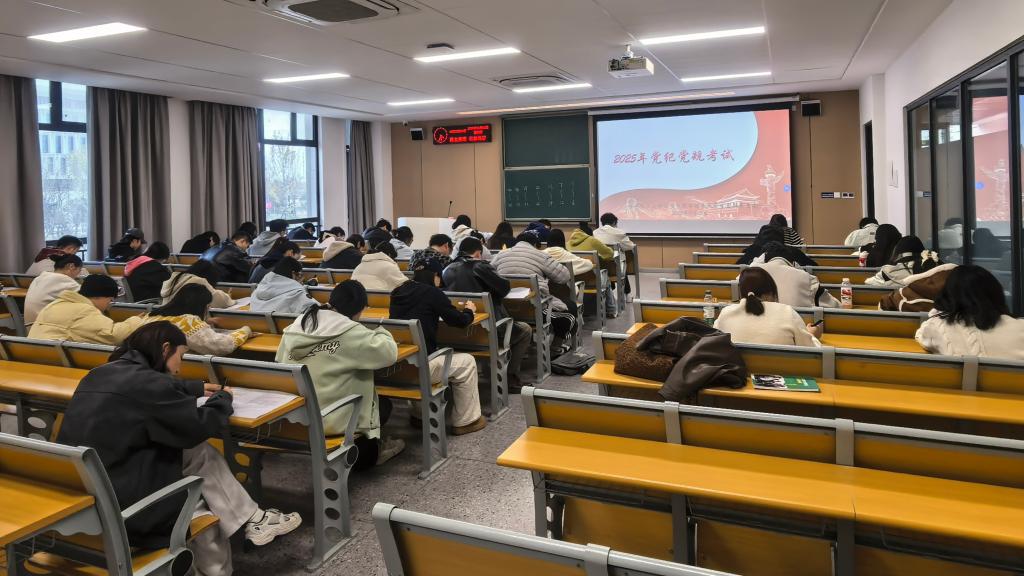 本网讯(通讯员黄江琴)为强化党员纪律意识,推动党纪党规学习走深走实,11月13日下午4:30,管理学院学生党支部于A202教室开展2025年党纪党规考试。本次测试以闭卷形式进行,管理学院全体学生党员参加。