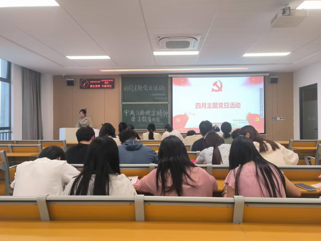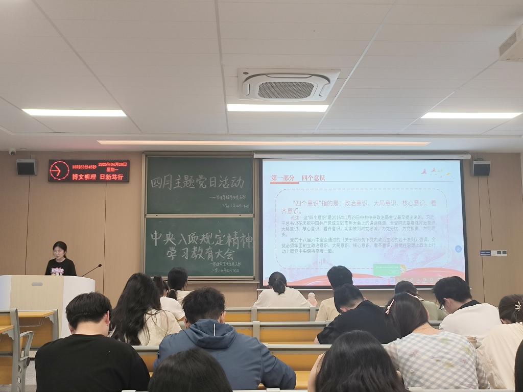 本网讯(通讯员李琪)管理学院学生党支部于4月28日晚18:30,在教学楼A402召开四月主题党日活动,管理学院全体党员参加。此次会议的主要内容是“开展深入贯彻中央八项规定精神学习教育”。会议由李琪同志主持。