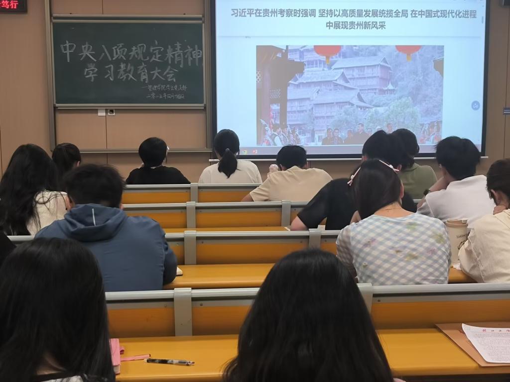 随后,支部集体观看了习近平总书记在贵州考察时的新闻报道视频。习近平总书记强调“坚持以高质量发展统揽全局,守好发展和生态两条底线”,并寄语贵州“在中国式现代化建设中谱写新篇章”。支部成员立足学生身份,探讨如何将习近平总书记的嘱托转化为实际行动。不少同志表示,看到侗寨在党组织带领下的发展成果深受鼓舞,毕业后愿意投身乡村建设,为乡村振兴、生态保护贡献智慧。