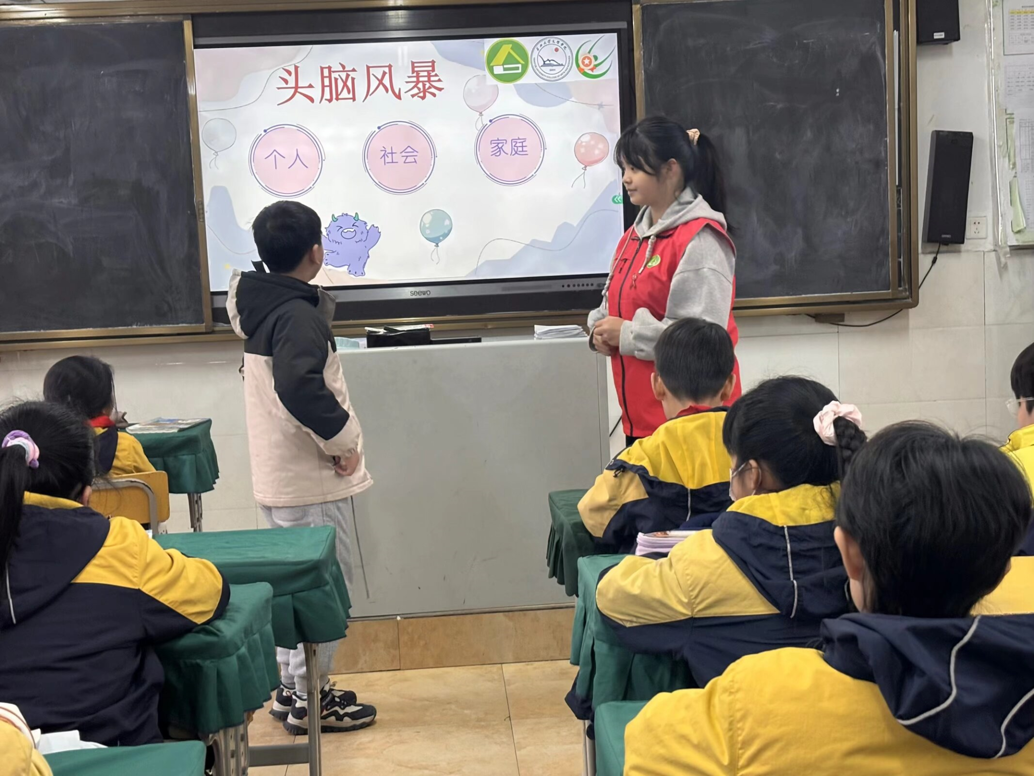 本次同伴教育活动由董敏瑶、肖蕊蕾、汪妙笛三位主持人同步走进各班级,为同学们带来了一场兼具温度与意义的成长课堂。活动伊始,主持人与同学们共同约定互动规则,随后以趣味十足的“ABB词语接龙”小游戏打破陌生感,在欢声笑语中拉近了彼此距离。在这般融洽的氛围里,主持人用通俗易懂的语言拆解艾滋病相关知识,引导大家通过头脑风暴畅所欲言,深入探讨这一疾病对个人健康、家庭幸福与社会和谐的多重影响。紧接着,活动聚焦“自我保护”核心主题,通过贴近生活的情景演绎,让同学们在沉浸式体验中直观学会辨识性骚扰风险,掌握科学应对的方法。整个环节以互动问答与细致讲解层层递进,将“珍爱自我,勇敢说‘不’”的信念如种子般悄然播撒在孩子们心中,筑牢了成长路上的安全防线。