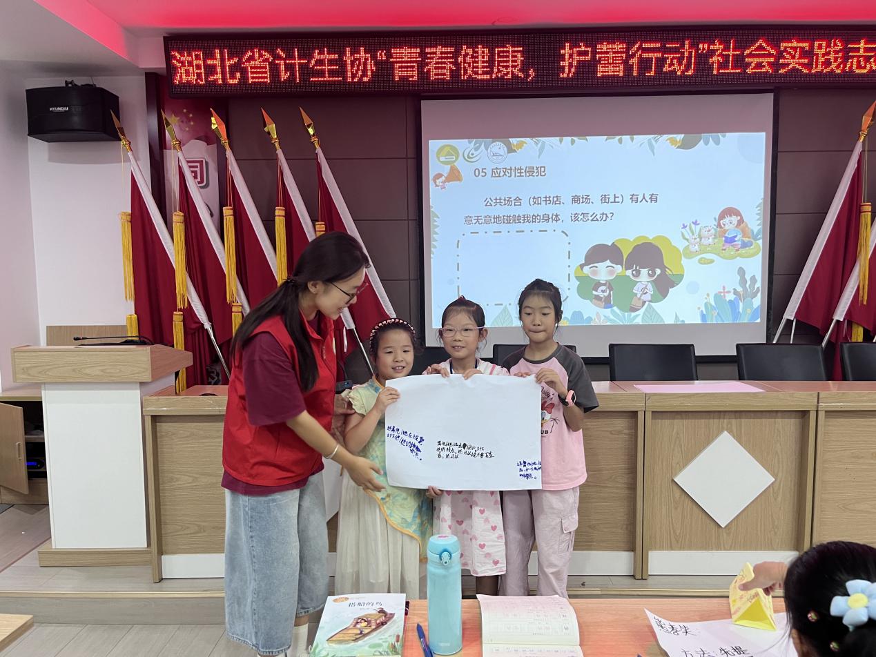 本网讯(通讯员:孙悦)近日,为积极响应湖北省计生协关于开展“青春健康,护蕾行动”暑期志愿服务活动的倡议,省计生协青春健康williamhill官网“青铸未来,健筑梦想”项目点志愿者服务队于7月22日至23日前往茶庵寺社区、郢都路社区开展社会实践活动,本次活动紧紧围绕“预防性侵害”“生活中如何禁毒防艾”等内容开展青春健康教育。