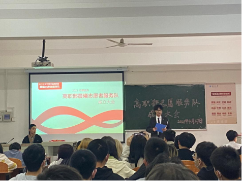 本网讯(通讯员 向坤)2021年4月27日,在国际五一劳动节来临之际,我系部“晨曦”志愿者服务队成立大会在西区4教102教室如期举行。出席本次大会的有高职部学生党支部书记黄婷婷、志愿者服务队指导老师王瑆皓、团总支学生会及志愿者服务队成员。本次会议由团总支学生会干事刘昌睿主持。