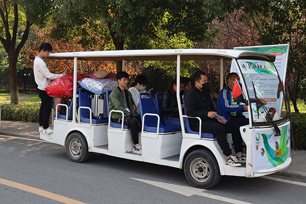 10日上午7时,高职部全体工作人员和255名学生志愿者,以最佳状态上岗待命。学校大门口的安保人员严格加强管理,有序疏导人员和车辆;高职部相关职能部门工作人员,在指定区域做好行李消毒、核验证件、体温检测等工作。校内,摆渡车不断来往于校门口与报到处,热情周到为新生提供服务。