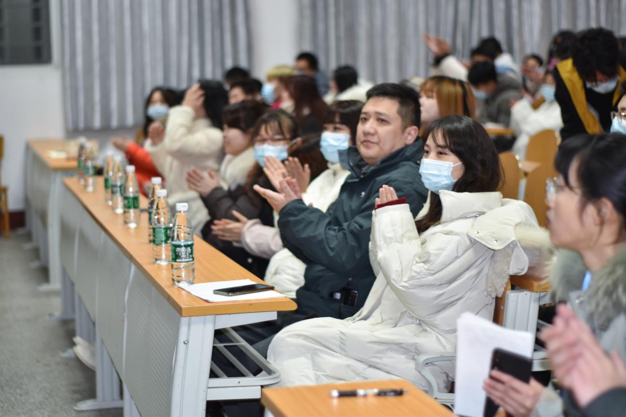 高职部黄婷婷老师总结本学期的工作,她肯定了这一学期以来的工作成果以及对后面工作的展望,也感谢全体成员的辛苦付出。高职部王瑆皓老师上台讲话,肯定了学生会的工作,作出后期的工作展望以及总结本年度的不足,对学生会成员作出更高要求。