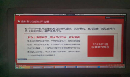 团课开始,各班团支书播放教育片,教育片通过剖析典型案例,讲述勤俭节约的故事,让我们身临其境,自主引发自我反思。团课从餐饮方面着手,带领同学们认识到当前粮食浪费的三个方面,着重强调了“光盘行动”,倡导同学们抵制浪浪费,勤俭节约。
