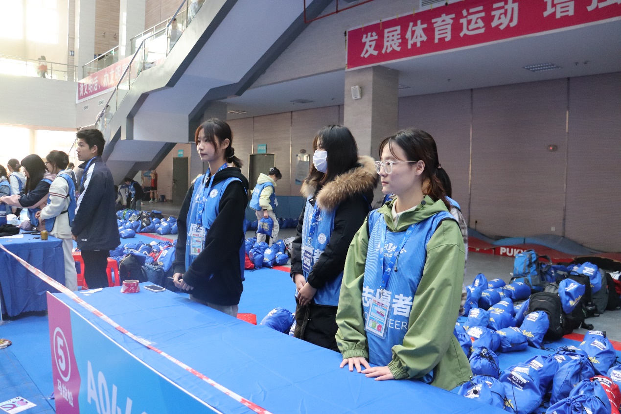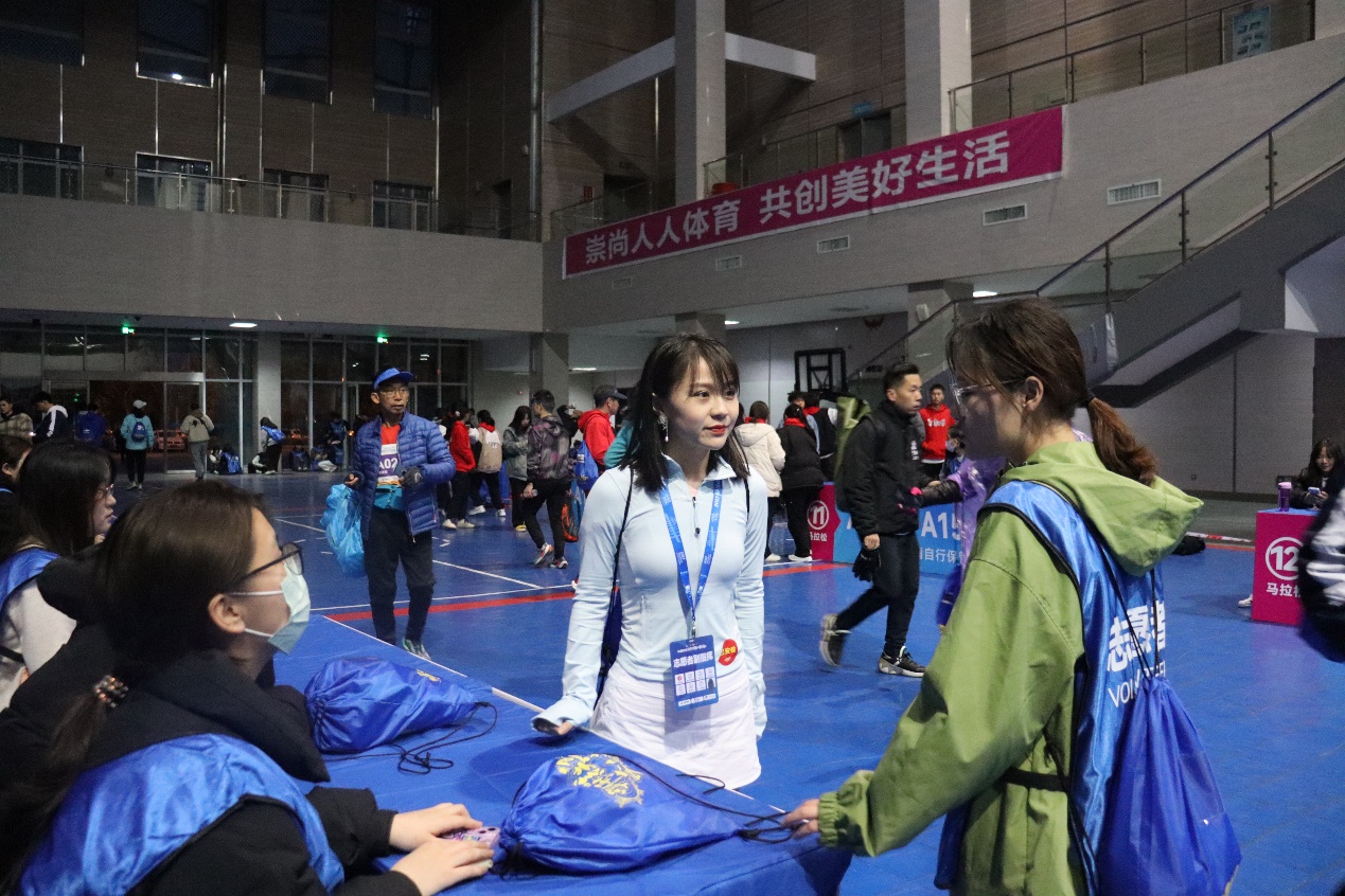 凌晨4点,各岗位志愿者即集结完毕,按照点位乘车,抵达15个公里补给站。大家通力配合、灵活协作,承担为参赛者赛前检录、秩序维护、存储衣物、赛道指引、加油助威等工作。