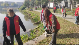 图志愿者清扫河边现场