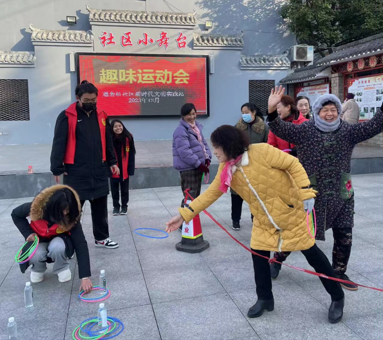 12月19日,通会桥社区在社区小广场举行冬季趣味运动会。此次运动会以趣味性和娱乐性为主,设置了套圈、踢毽子等适合大众参加的趣味比赛项目,吸引了众多居民报名参加。活动伊始,志愿者先将套圈游戏用的套圈依次分发给各位居民,并介绍了游戏规则,看着琳琅满目的小礼品,居民朋友们都跃跃欲试。一旁的居民们在志愿者的带动下,不停呐喊助威,现场不时传来阵阵喝彩声。踢毽子赛场上,参赛队员们热情高涨、活力四射,纷纷展示了自己的高超技能,围观群众不断地为参赛选手们加油助威,现场气氛融洽而热烈。
