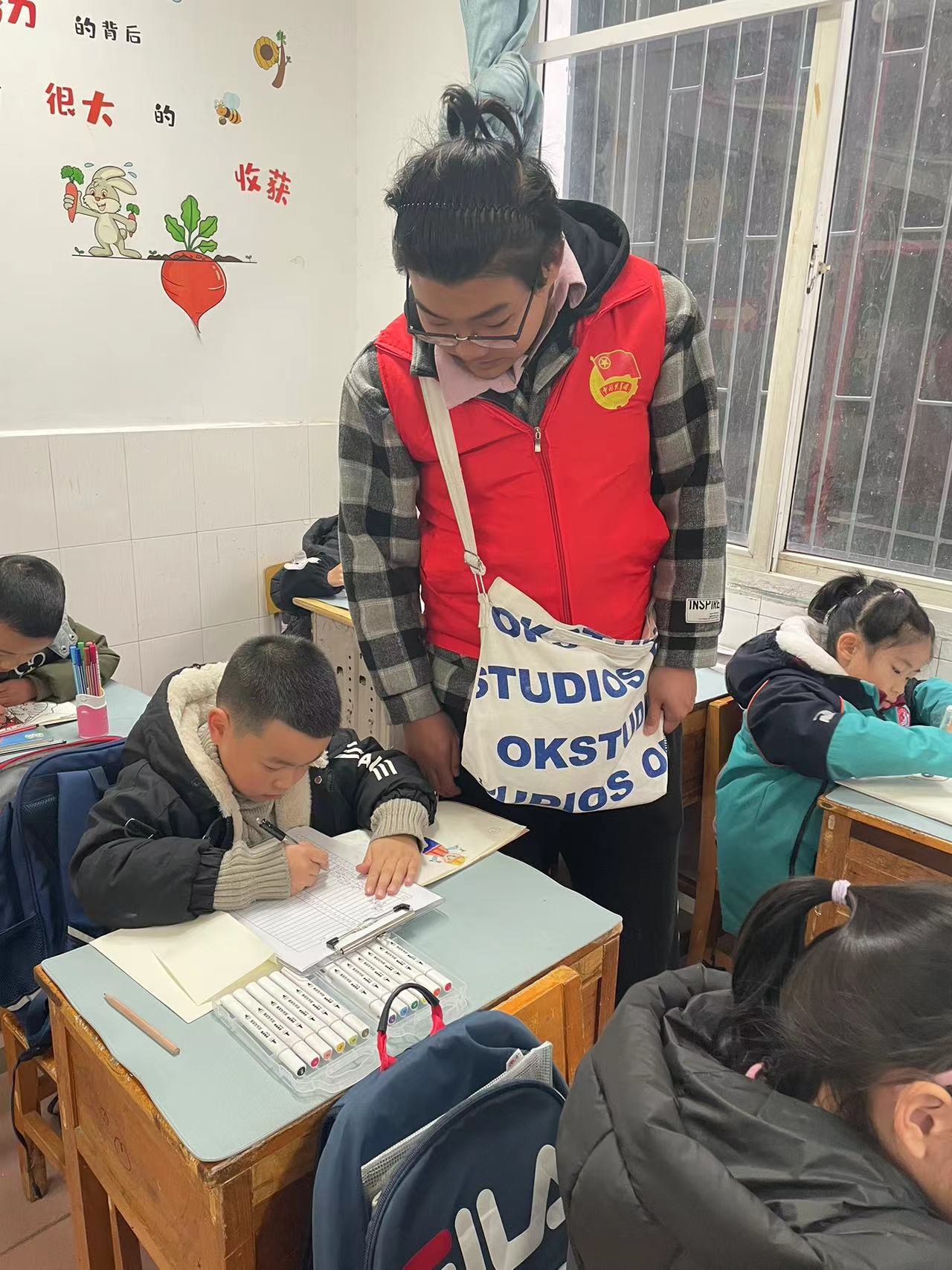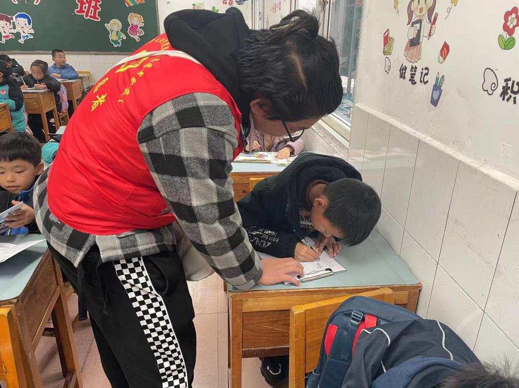 活动伊始,志愿者对同学们进行了签到活动,随即开展趣味游戏、辅导孩子们作业等活动。活动中,志愿者们认真辅导孩子们完成作业,帮助他们找到适合自己的解题思路。辅导结束后,跟孩子们一起开展手指舞、折纸花、绕口令等小游戏,在游戏过程中,通过与孩子们交流,了解孩子们的学习生活情况,为孩子们送上关心与祝福。