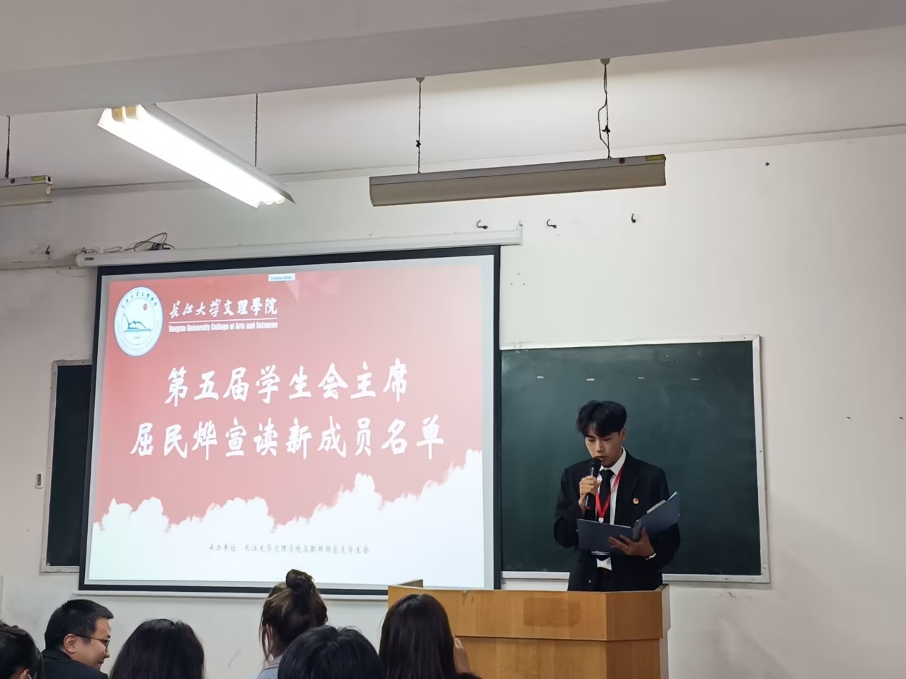 会议第二项,由学生会主席屈民烨宣读各部门成员名单,带领大家了解新成员。一个个陌生的姓名,一张张崭新的面貌,怀着一腔热血加入学生会这个大家庭中。所谓“无规矩不成方圆”,会议第三项,主席熊祉恒引领新成员学习学生会规章制度,他强调新成员应牢记使命,遵守纪律,认真服务同学们。