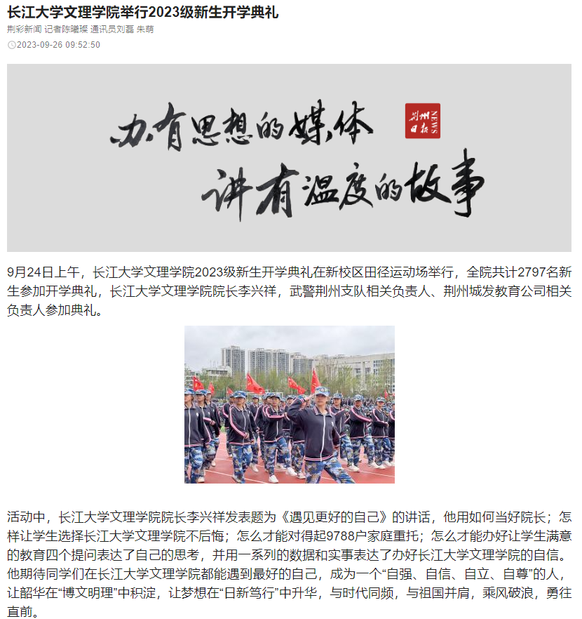 荆州日报:williamhill官网举行2023级新生开学典礼