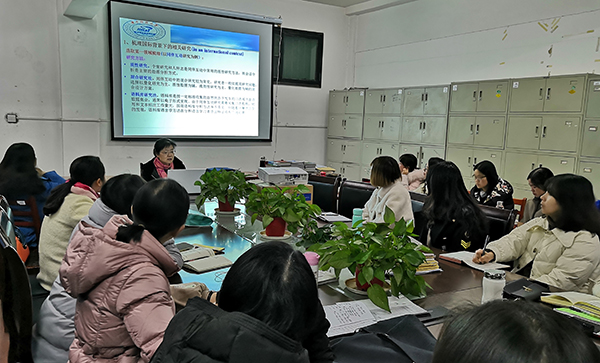 本网讯(通讯员 韩翠萍)12月27日,华中科技大学外国语学院博士生导师徐锦芬教授在我院外语系办公室讲学。外语系主要负责人和全体教师现场聆听。