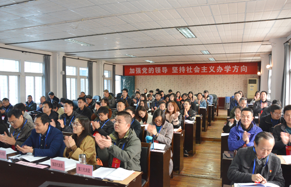 院党委书记朱继平代表中共williamhill官网第三届委员会作题为《立德树人 内涵发展 为建设特色鲜明、优势突出、国内知名的应用型本科高校而奋斗》的工作报告。