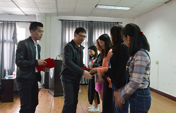 会后,孙细望为获评2018-2019学年度优秀辅导员的六名老师颁奖。