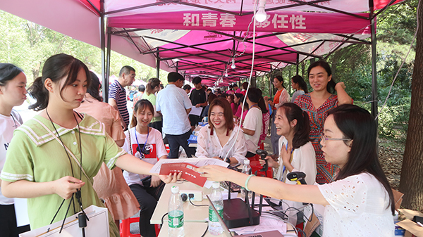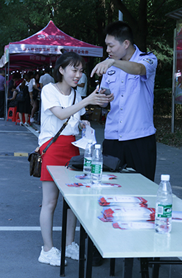 校园安保队工作人员进行交通疏导,指挥车辆停放,确保校内道路畅通;财务部门工作人员在现场咨询点认真工作,耐心解答新生和家长的问题;同时,校内设立家长休息区,备有茶水和凳子,志愿者向家长提供热情服务。