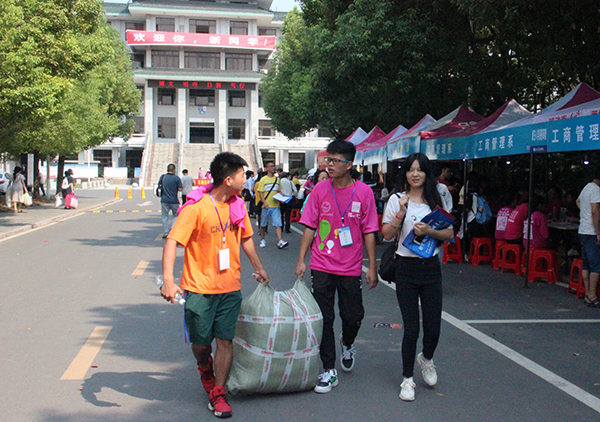下午两点,586名迎新工作人员准备就绪,分别在入学资格审查处、绿色通道办理处、缴费咨询处、校外接待点等岗位有序开展工作。新生报到流程图、车辆引导图等各类指示展板与新生签名墙均布置妥当。281名志愿者在校内引导新生办理学籍注册、班级分配及食宿安排等手续;30名志愿者跟随学院安排的8辆公交大巴,分别到达荆州火车站、沙市红门路汽车站、沙市三岔路汽车站迎接新生。