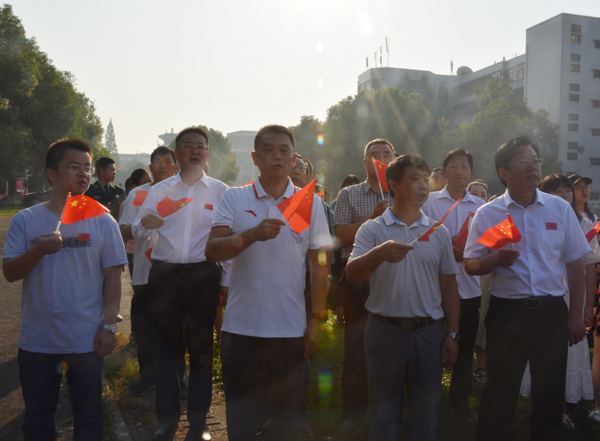 本网讯 今天(10月1日)上午,我院隆重举行升国旗唱国歌活动。在校院领导、长江大学部分处级领导和教师、学生工作部负责人、城中校区各系党总支书记、辅导员、在校学生参加升旗仪式,并对国旗行注目礼。此次活动是我院“不忘初心、牢记使命”主题教育的重要内容,通过升国旗、高唱国歌、观看国庆庆典等多种形式来庆祝新中国成立70周年,激发师生的爱国热情。(记者 张曦 摄影报道)