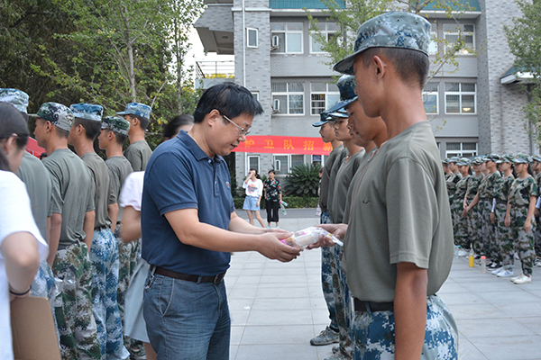 院领导为教官、师生送上中秋月饼,并向他们致以节日的问候。在慰问致辞中,院领导希望同学们在大学的第一个中秋节要过得充实、快乐;要充分体会中秋节所包含的中国传统文化内涵。院领导强调,军训是大学生活的第一课,更是磨砺意志、培养独立品格的重要一课,要求同学们坚决服从教官指挥,确保训练内容落到实处,确保训练成果达到预期,期待大家在不久后的军训汇报表演中以最佳状态展示军训成果,并叮嘱同学们在欢庆中秋佳节时一定要给父母打个电话或者发条短信,向家人送上美好的祝愿。