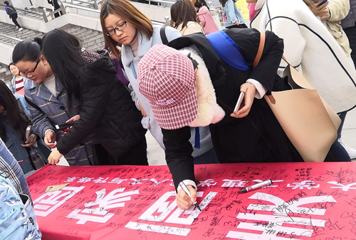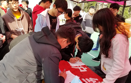 机电系在西校区12舍旁篮球场开展环保护绿宣传活动。西校区500余名师生纷纷在主题横幅上签名。此次活动主题是“守护绿水青山,共建美丽文理”,旨在通过校园宣传,让同学们深刻认识“绿水青山就是金山银山”的发展观,树立爱护环境的意识,为共同建设美丽文理贡献一份力量。