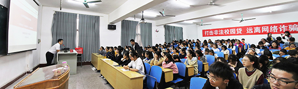 史亚博围绕“打击非法校园贷 远离网络诈骗”的主题展开讲座。他以校园贷款、电信诈骗、传销组织等真实案例,警示同学们识别贷款陷阱,远离网络诈骗,有效保护自己。