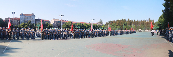 本网讯(见习记者 司琦 马玉婷)今天(9月9日)上午,我院在西校区、城中校区先后举行2018级新生军训开训暨授旗仪式。党委副书记孙细望为军训方队授旗,宣布2018级新生军训开始。此次共有8个营、23个连参加军训,军训内容包括队列训练、军体拳基础动作、内务整理训练和军事理论学习,为期13天。