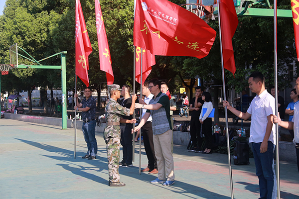 承训部队全体官兵、各系负责新生军训的党总支副书记、高职部负责人、2018级全体辅导员和学生工作部相关老师、全体2018级新生参加仪式。授旗仪式由学生工作部副部长陈海波主持。