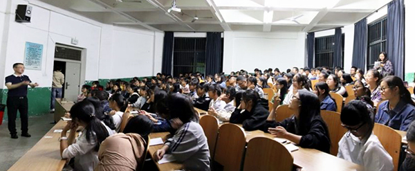 本网讯(见习记者 朱海燕 杨丹丹)9月26日晚,在城中校区2教203教室,荆州市心理援助志愿者协会会长、长江大学客座教授邓培军应邀来我院讲学。工商管理系相关负责人、新生辅导员和该系130余名新生到场聆听。