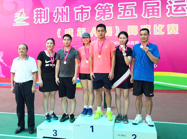 本网讯(通讯员 王慧颖)8月8日至10日,荆州市第五届运动会(成年组)网球比赛在荆州古城举行。我院基础课部教师陈立明代表荆州区代表队角逐男女混合双打。陈立明和队员们力克群雄,夺得混合双打冠军。荆州市文体局局长文艺为获奖选手颁奖。