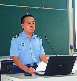 空军某厂站指挥台台长许刚向同学们介绍了中国空军的发展历程,展示了人民空军的光辉战绩、优良传统和建设新成就,以人民空军的“老航线精神”、“上甘岭精神”和“空中铁拳精神”,激励青年大学生面向未来、奋发努力、报效国家。