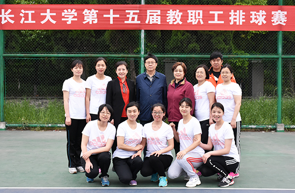 学院领导高度重视职工体育活动的开展,比赛准备期间,院长梅平、党委书记李应军多次来到现场看望慰问选手。24日下午,我院教工女排队与长江大学体育学院女排队展开激烈对战,梅平和副院长李琴一起来到现场观战,为选手们加油助威。
