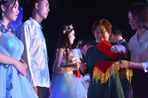在醉人的晚风中,备受期待的压轴表演礼服展示终于闪亮登场。16位选手仪态万方,宛如芳华初露的风荷,随风飘举。她们身着各色纱裙和礼服,落落大方依次登台。璀璨的灯光和柔美的夜色,将同学们瑰丽的青春映衬得更加光彩夺目。夜幕时分的T台,成为绽放青春智慧、激情和梦想的炫丽舞台。