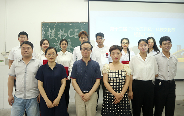 本网讯(见习记者 吴庆慧 汪林 胡玉林)5月16日下午,首届模拟CEO大赛决赛在我院西校区3教401教室举行。经济与贸易系主任万楚军、副主任罗明、党总支副书记王震、国贸专业王颖老师和辅导员王大专担任评委。150余名学生现场观摩。