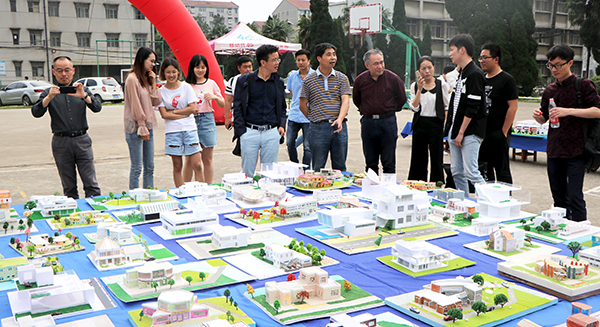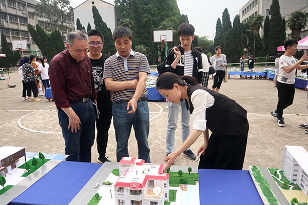 比赛分初赛和决赛两个阶段。初赛时共展出来自环境、景观、设计、建筑、城市规划等专业同学亲手制作的133件建筑模型,包括学校场馆设计、茶室设计、别墅设计、博物馆设计等。在展示区,这些精美的作品呈现在师生面前,供大家欣赏和投票。根据投票和打分评比,25件作品进入决赛阶段。然后,由选手通过手稿、PPT等形式对自己的作品进行讲解,内容包括制作过程、设计理念等。