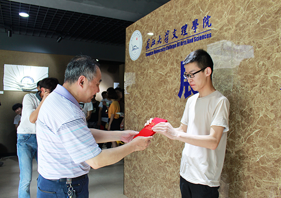 在西校区展厅,张系斌教授为获奖学生颁奖。