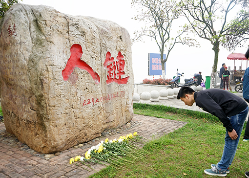 随后,人文系师生依次上前,在“人链”纪念碑前缓缓鞠躬,为英烈敬献鲜花。