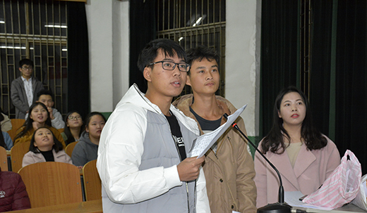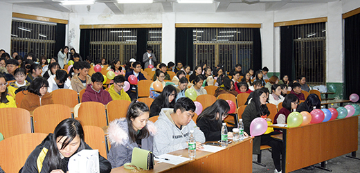 孙婉婷老师、该系学生会和楚风协会学生干部等6人担任本次比赛评委,参赛选手和外国语系相关专业的近百名同学共同观摩比赛。
