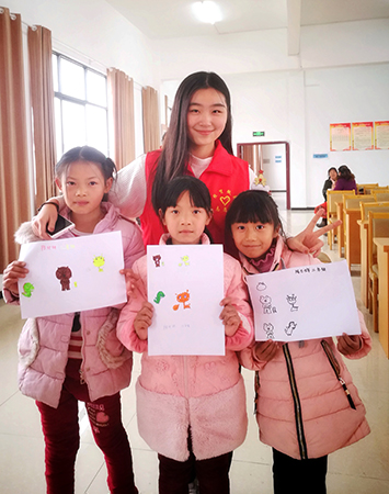 志愿者为留守儿童上基础绘画课