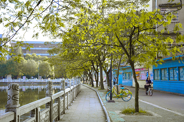 塘水莹泽的初冬校园,天是那么高,那么蓝,那么亮。