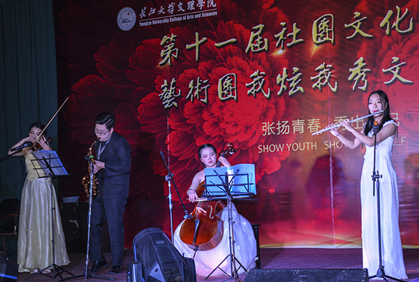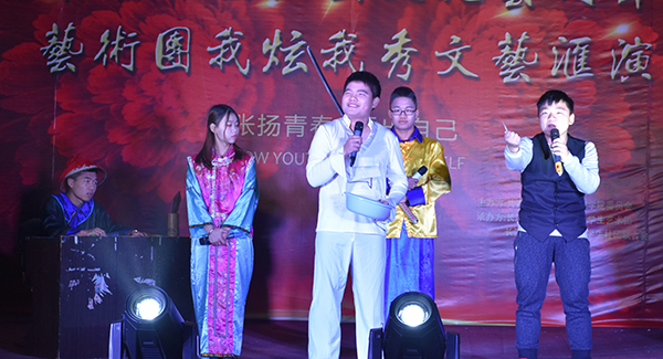 本网讯(见习记者 赵娟 马玉婷 李洋 朱海燕 吕鑫)12月1日晚,城中校区工会大厅灯光璀璨,人潮涌动。第十一届社团文化艺术节之“我炫我秀”文艺汇演在此华丽谢幕。600余名师生在浓郁的艺术氛围中共享一段美好时光。