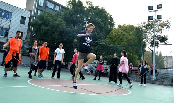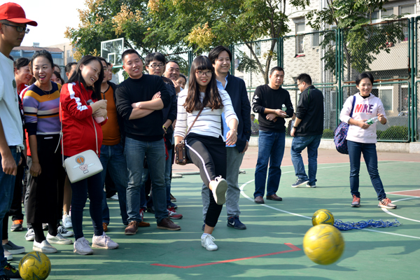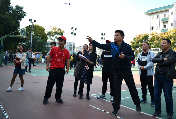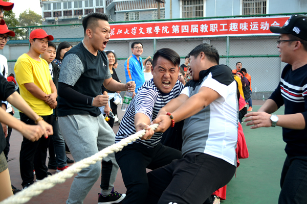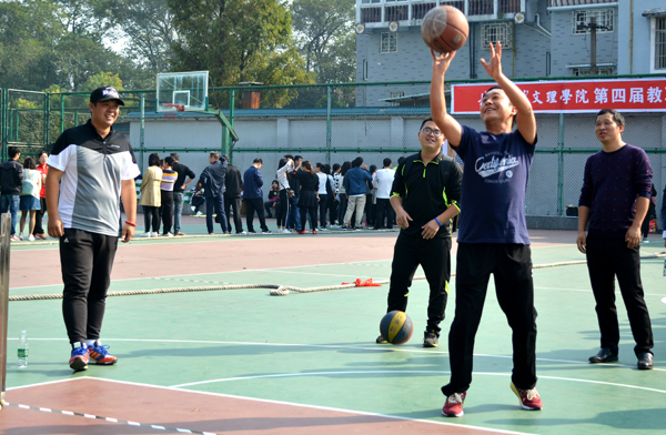 本网讯11月2日,我院第四届教职工趣味运动会在城中校区灯光篮球场举行,来自学院9个工会小组的会员参加了六个项目的比赛,其中个人项目四项,分别是定点投篮、网球掷准、标标红中、足球中柱;集体项目两项,分别为穿越大绳、拔河。最终,穿越大绳项目第一名由机电系工会小组获得,拔河项目第一名由外语系、机电系、设计系工会小组联队获得。(记者 吴秀丽 摄影报道)