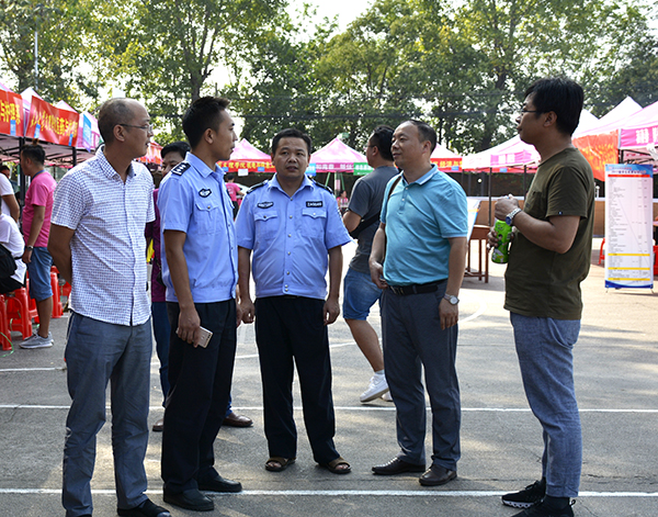 上午,在西校区迎新点,文谟汉听取了我院后勤与保卫处处长郭明虎介绍迎新安全保卫工作的基本情况,对我院安保工作提出了指导意见。