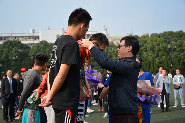 学院党委书记李应军、党委副书记孙细望、院长助理郭明虎和体育运动委员会副主任李成军、刘磊,机电与信息工程系主任付兵等为获奖代表颁奖。