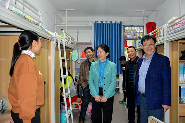 孙玉秋副市长(中)实地查看学生宿舍改造情况
