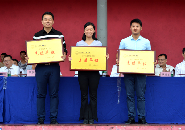 典礼上,郭睦庚宣读了《关于表彰2017级军训工作先进集体、先进个人的决定》。