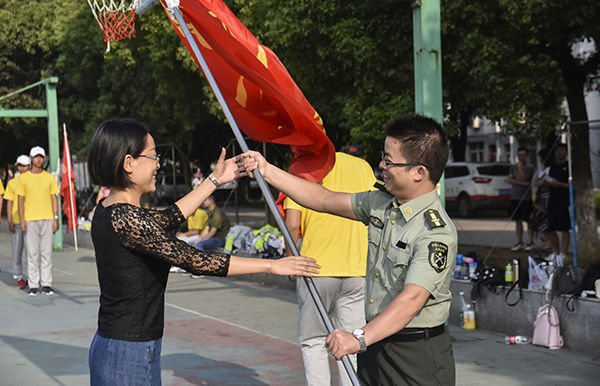 承训部队全体官兵,学生工作处相关工作人员、系部党总支书记、副书记、新生辅导员和全体2017级新生参加活动。授旗仪式由学生工作处副处长赵新凭主持。