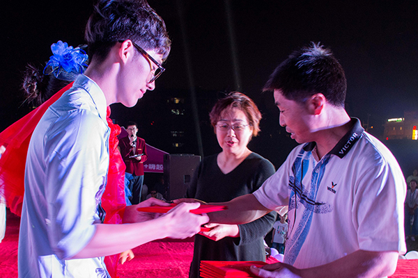 在激昂的乐曲声中,李琴、郭睦庚等领导走上舞台为获奖选手颁奖。