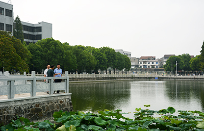 在风荷摇曳的玄宫塘畔,梅平一行兴致盎然的观赏了新长出的荷叶和盛开的荷花。满眼新碧点染着一派新气象。