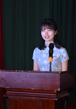 教师代表杨杨(左)、毕业生代表刘抒颖发言