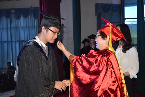 王金琼为毕业生颁发学位证书、援正流苏